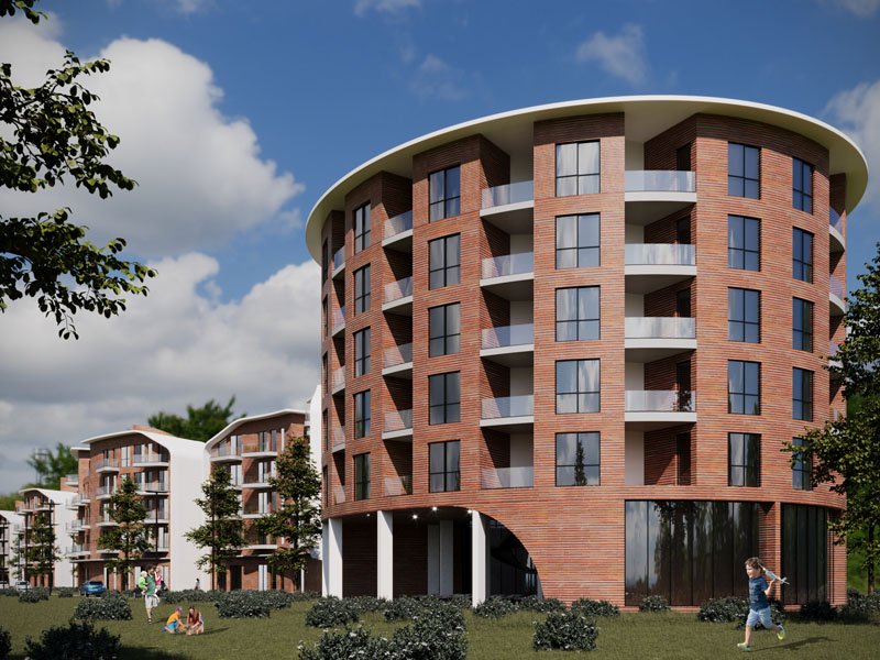 The buildings feature a curved form, creating a fluid silhouette for the entire complex. The orientation of the apartments is primarily toward the west, facing the sea. The apartments are designed in 1+1 and 2+1 typologies, with a predominance of the 1+1 units. The buildings mainly follow a typical floor layout; in two of the residential buildings, the ground floor is dedicated to services for the residents of the complex.