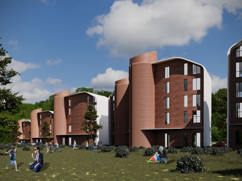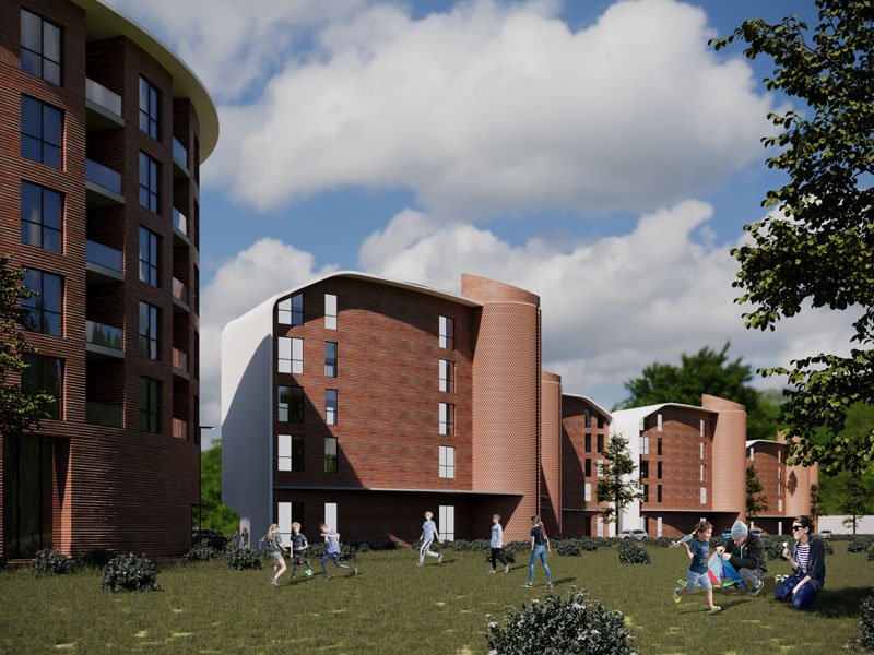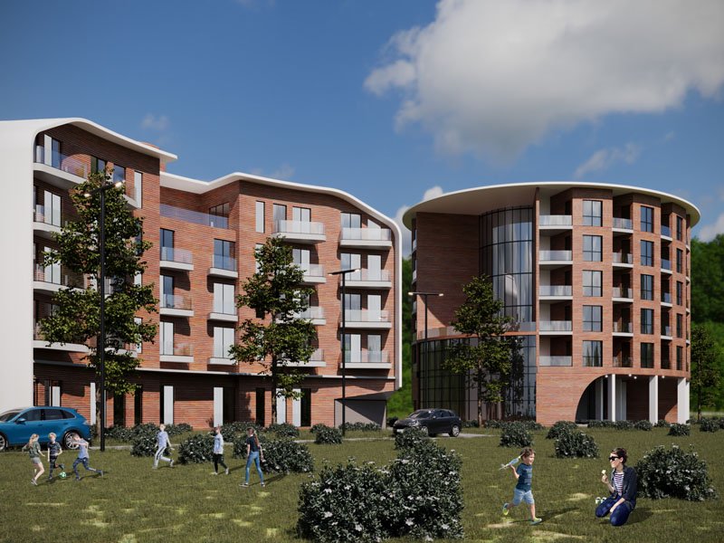 The project consists of nine buildings arranged along the length of the property. Eight of these buildings have a residential function, while one has a hospitality function (hotel), located at the southern edge of the site. The residential buildings are composed of six floors above ground and one underground floor dedicated to parking, whereas the hotel has seven floors above ground and two underground levels.