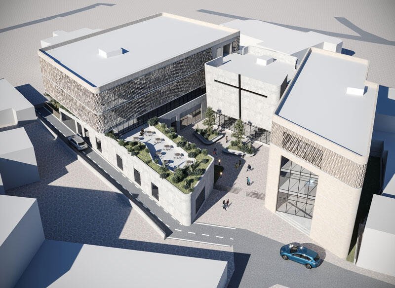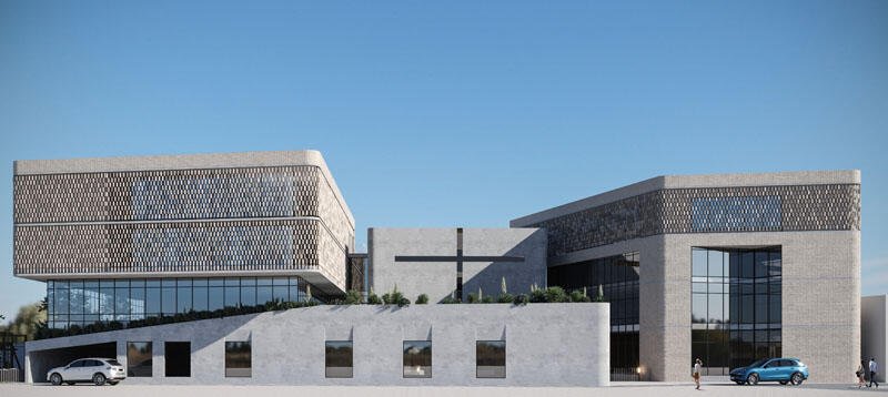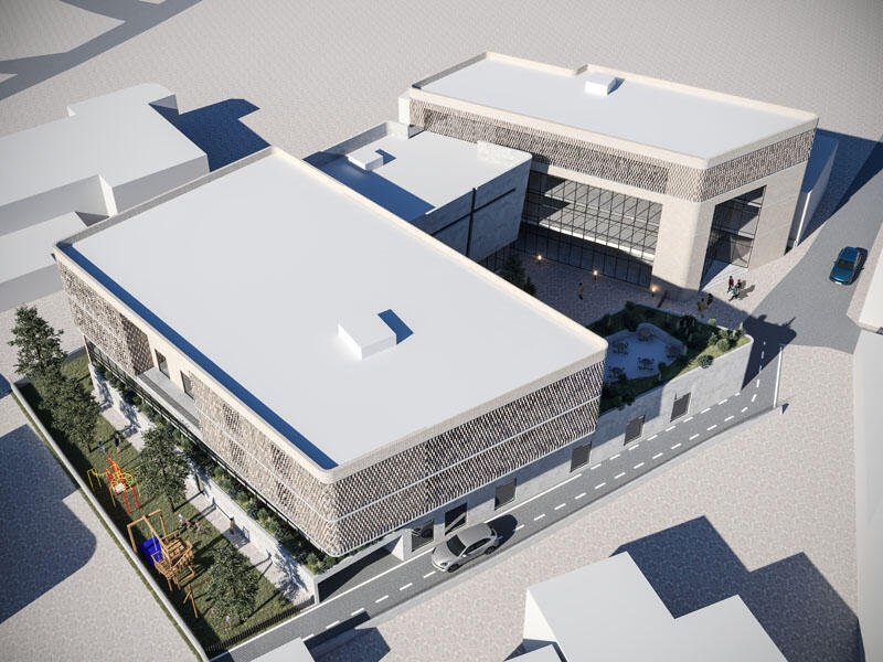 The project consists of a multifunctional building that develops up to a height of four floors. This build-ing will include various functions such as a kindergarten, youth center, elderly center, worship halls and classrooms, analysis laboratory, offices corresponding to the above-mentioned functions, gym, etc. The building occupies a total footprint of 1,322 m² and has a total construction area of 4,702 m².